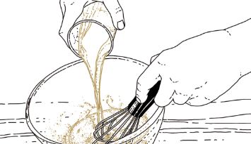 3. Если рецепт не подразумевает иначе, то муку сначала смешайте с молоком, а уже потом добавьте взбитые яйца в смесь